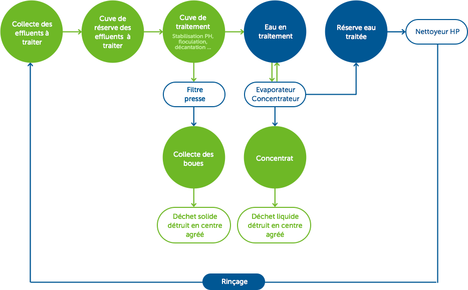 Nous sommes équipés d’une station en rejet liquide nul. Nos eaux sont collectées puis recyclées en interne.